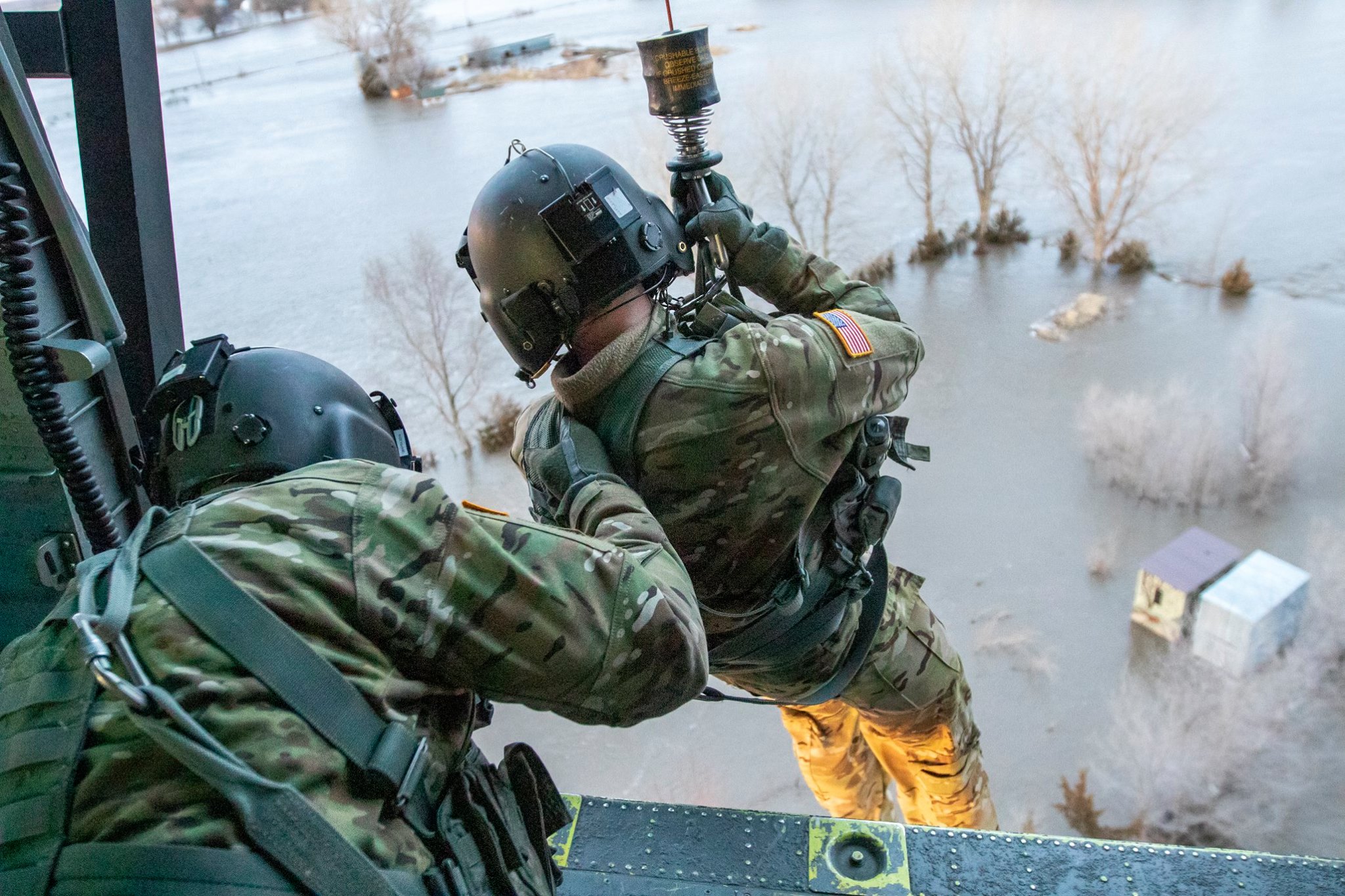 As a result of this unprecedented event, the Nebraska National Guard was immediately called to action, responding in ways never seen before – especially within their home state. For nearly a month, the Nebraska National Guard would complete flood-related missions – the largest domestic response in state history at the time. Their efforts would result in rescuing 112 citizens and 13 pets; delivering more than 90 tons of hay to stranded livestock; placing more than 2,000 sandbags; supporting eight counties with traffic control; and much more.