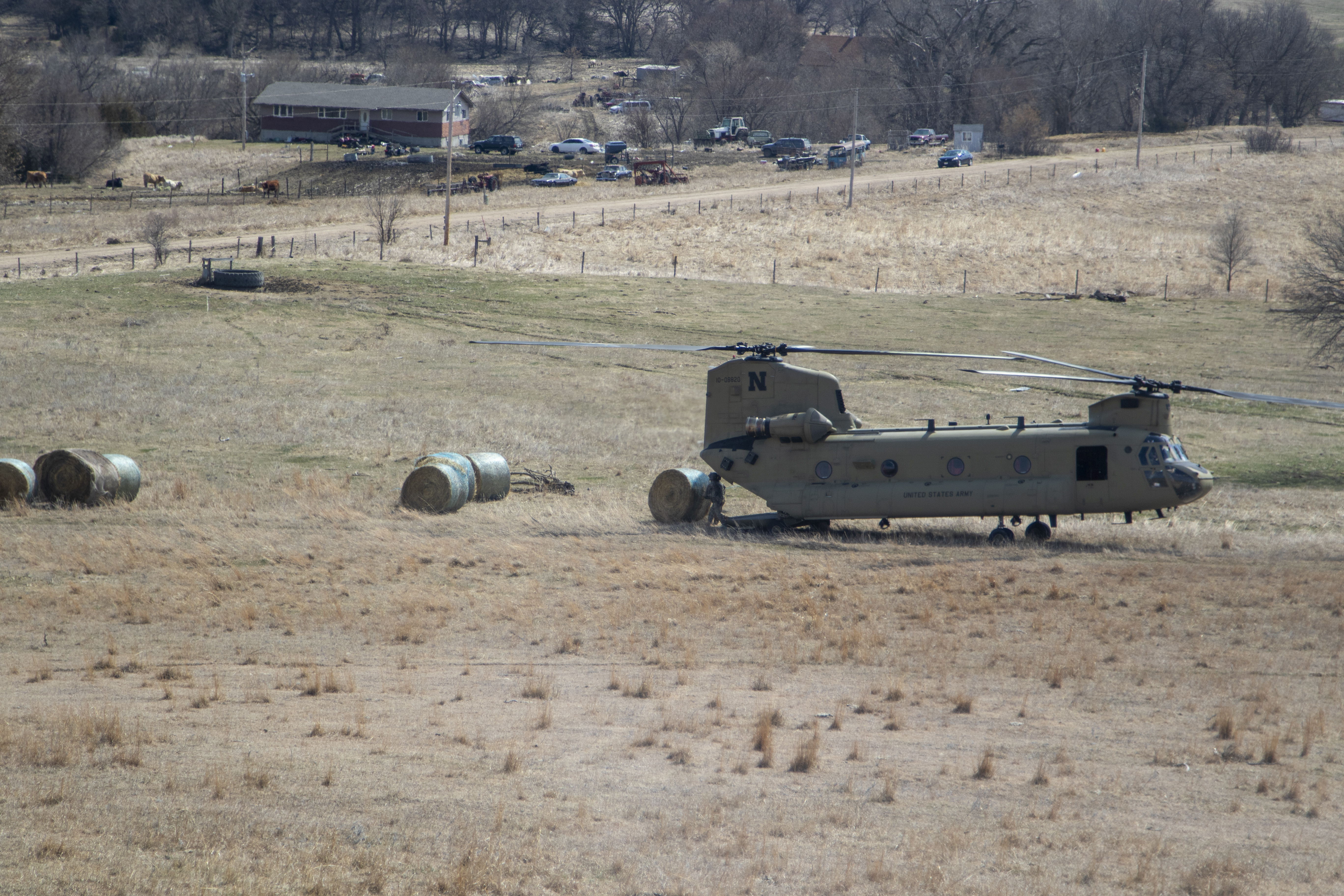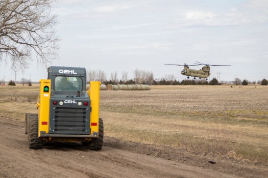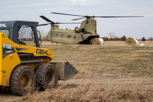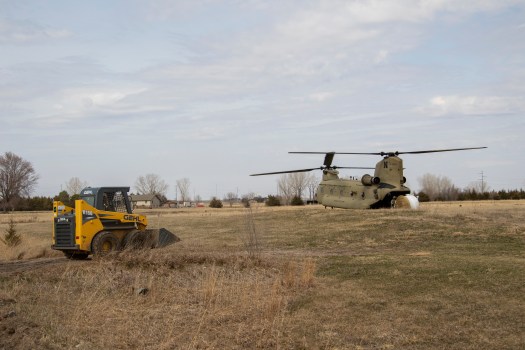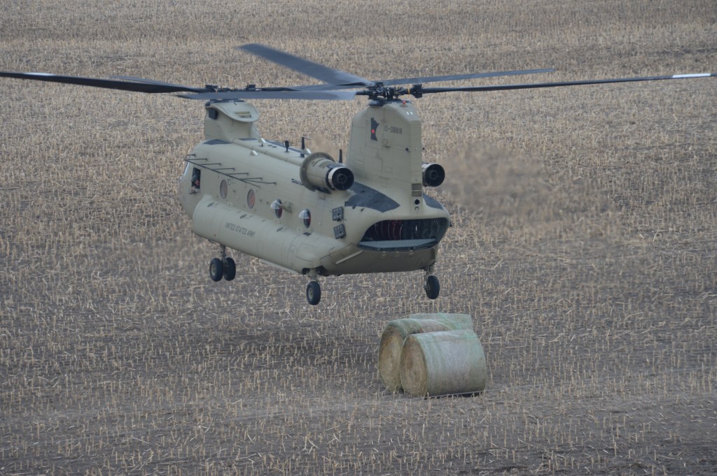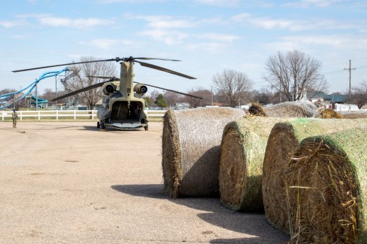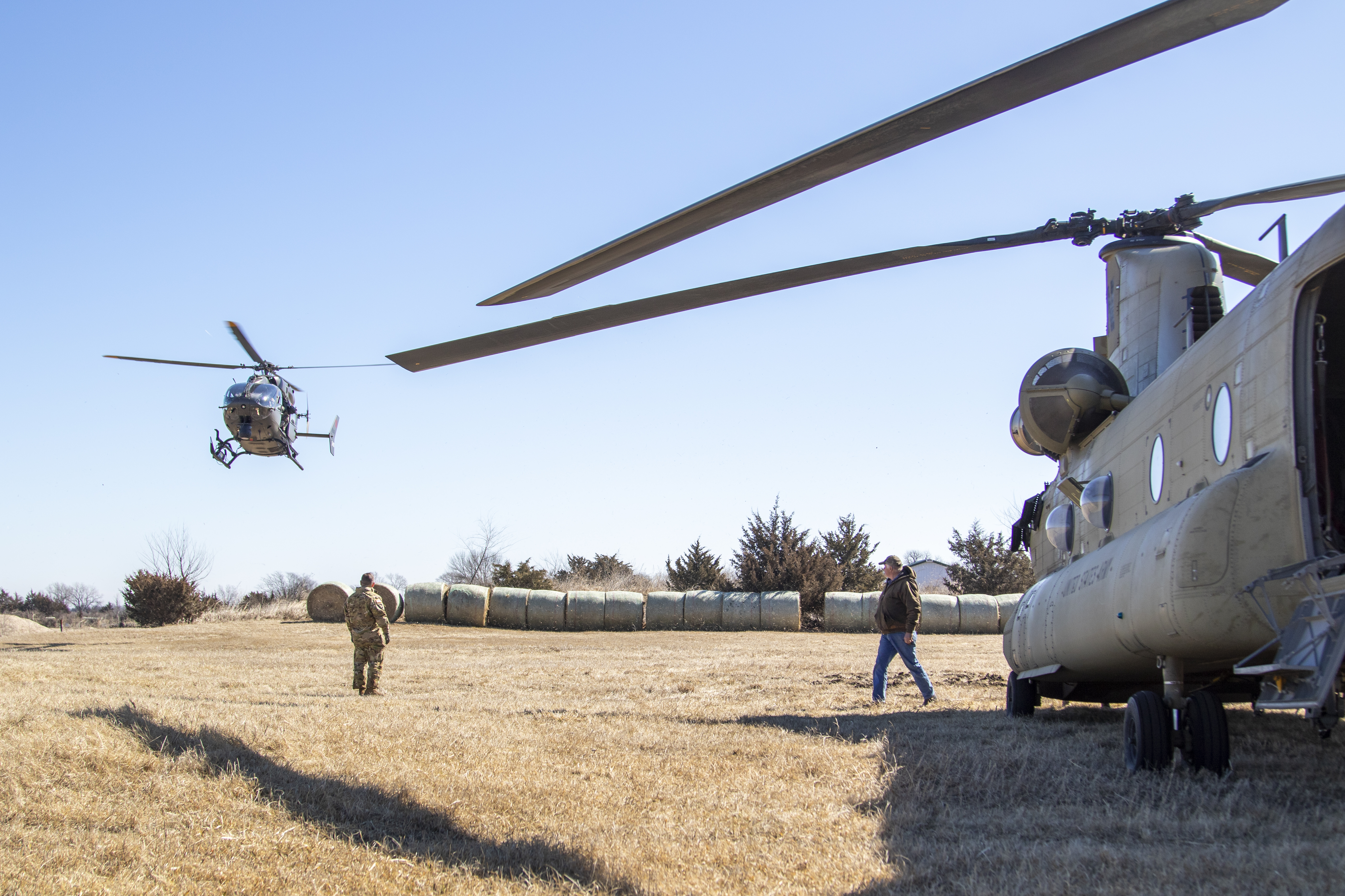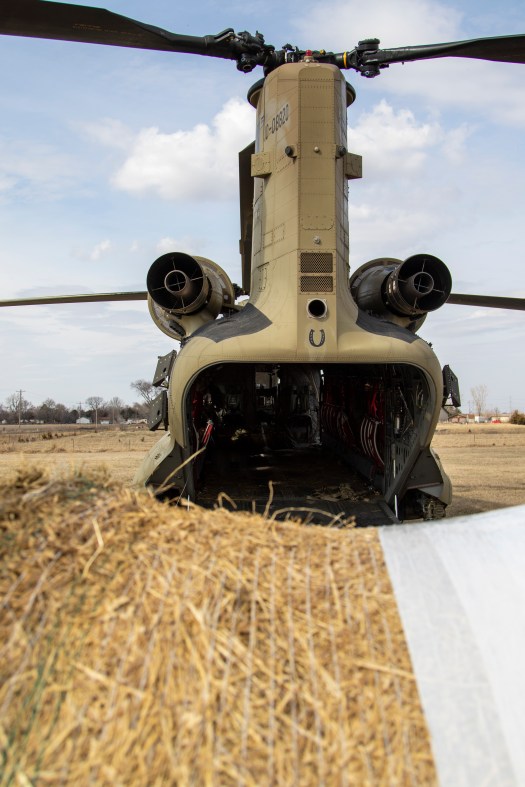 The Nebraska National Guard would continue to conduct hay delivery operations using CH-47 Chinook helicopters through early April, with maintenance assistance by the Minnesota Army National Guard’s Company B, 2-211th General Support Aviation Battalion, who were brought in with an emergency management assistance compact. The Minnesota unit would also have the opportunity to crosstrain with the Nebraska National Guard and help conduct aerial hay drop operations March 23, 2019.