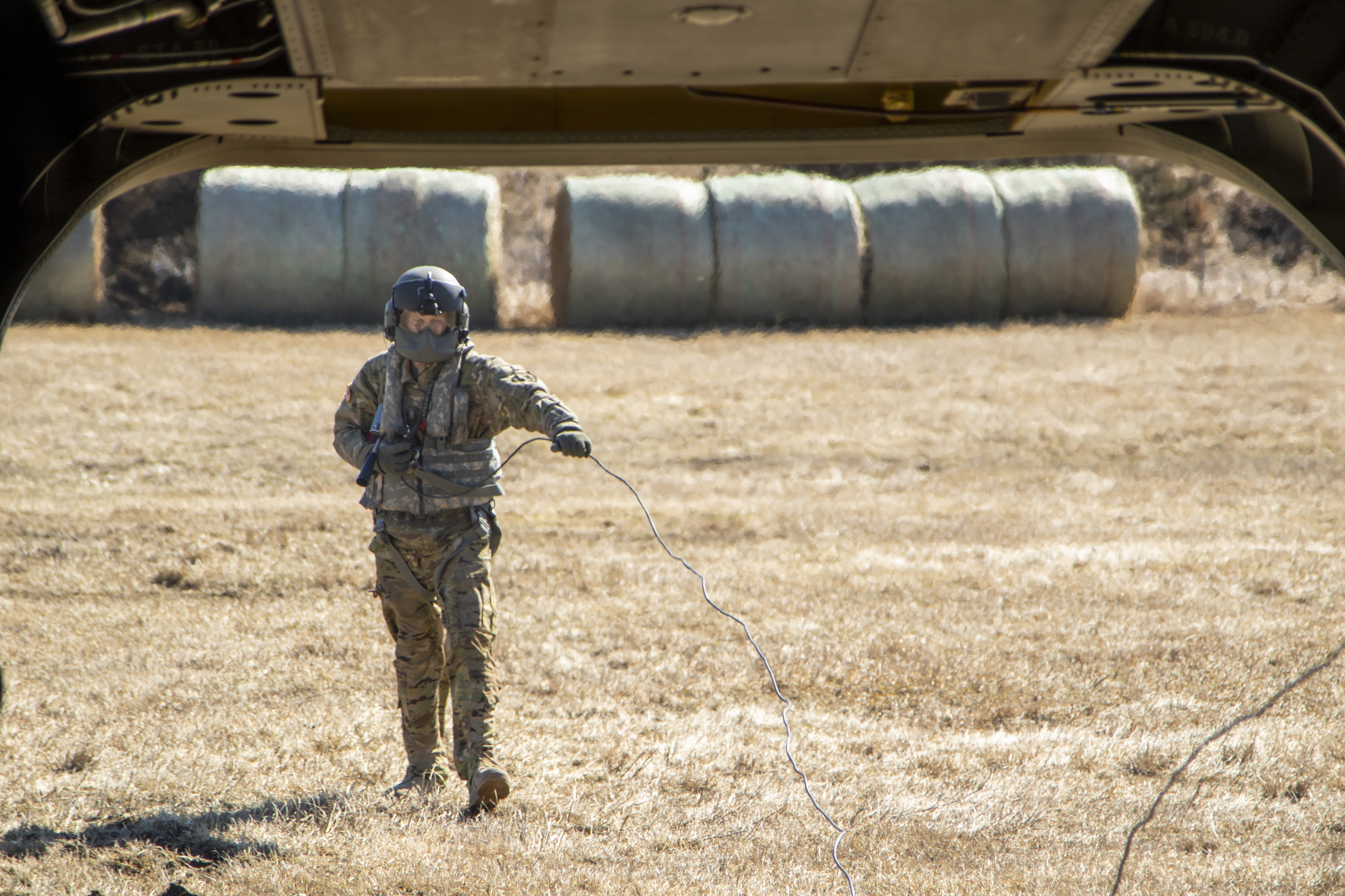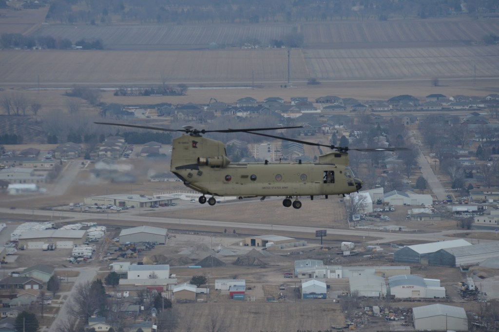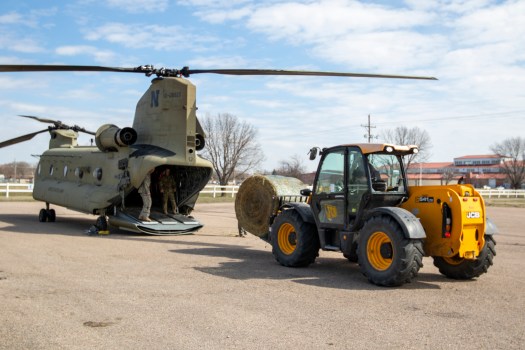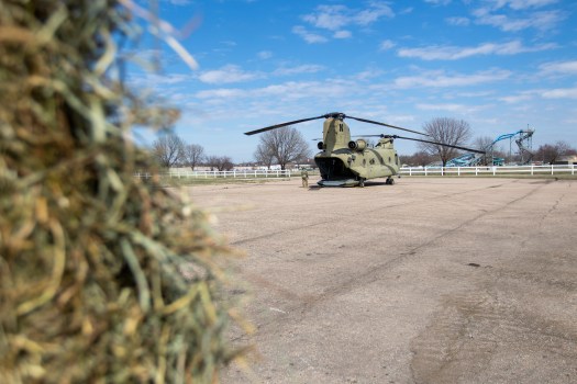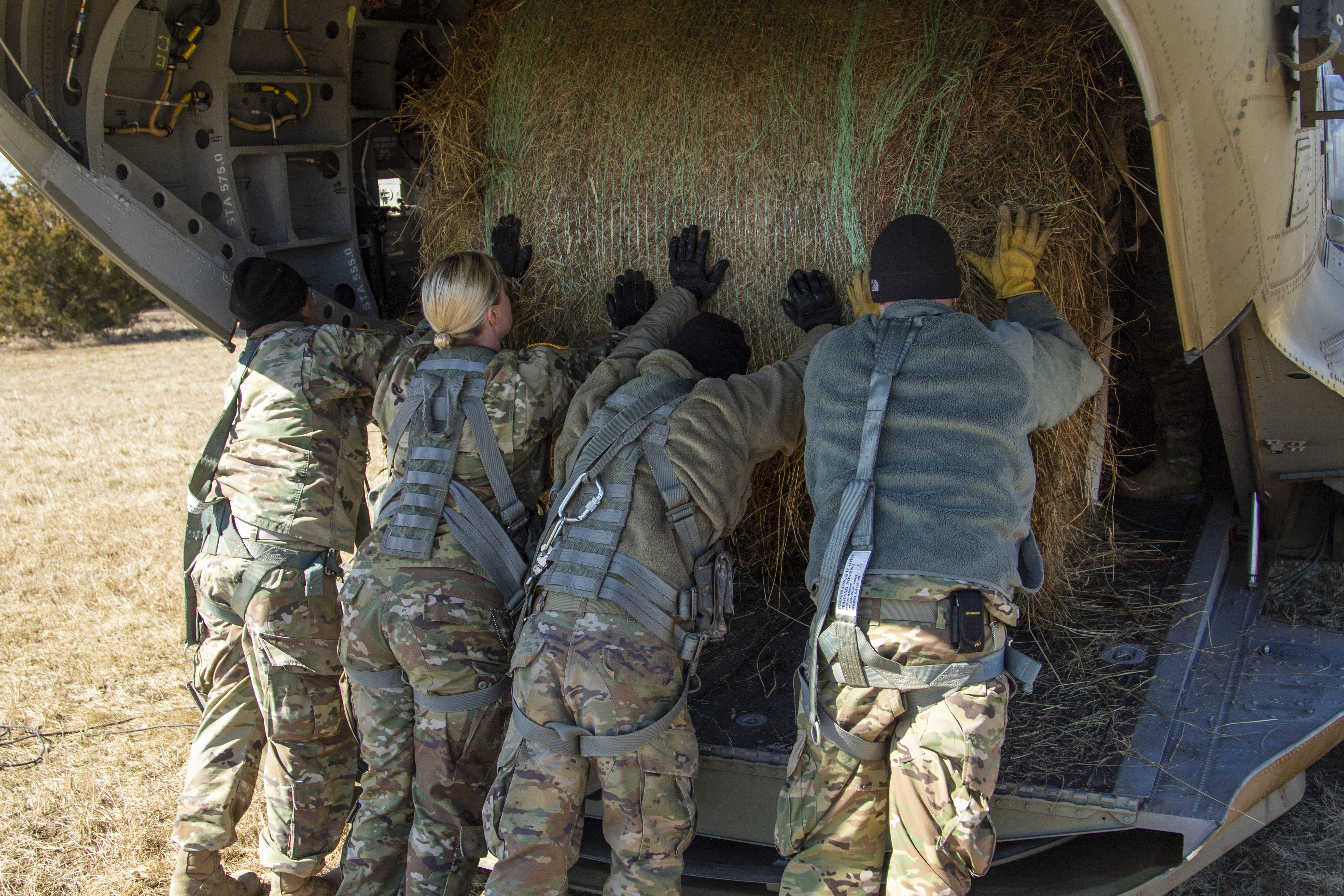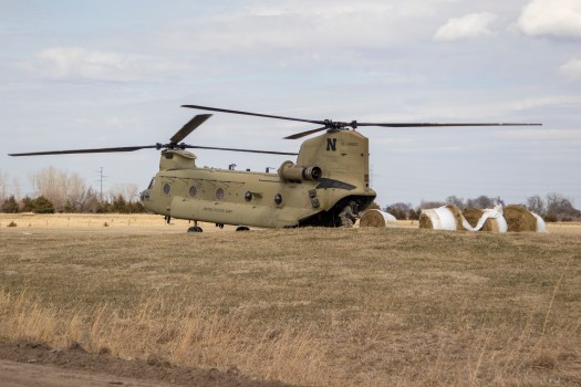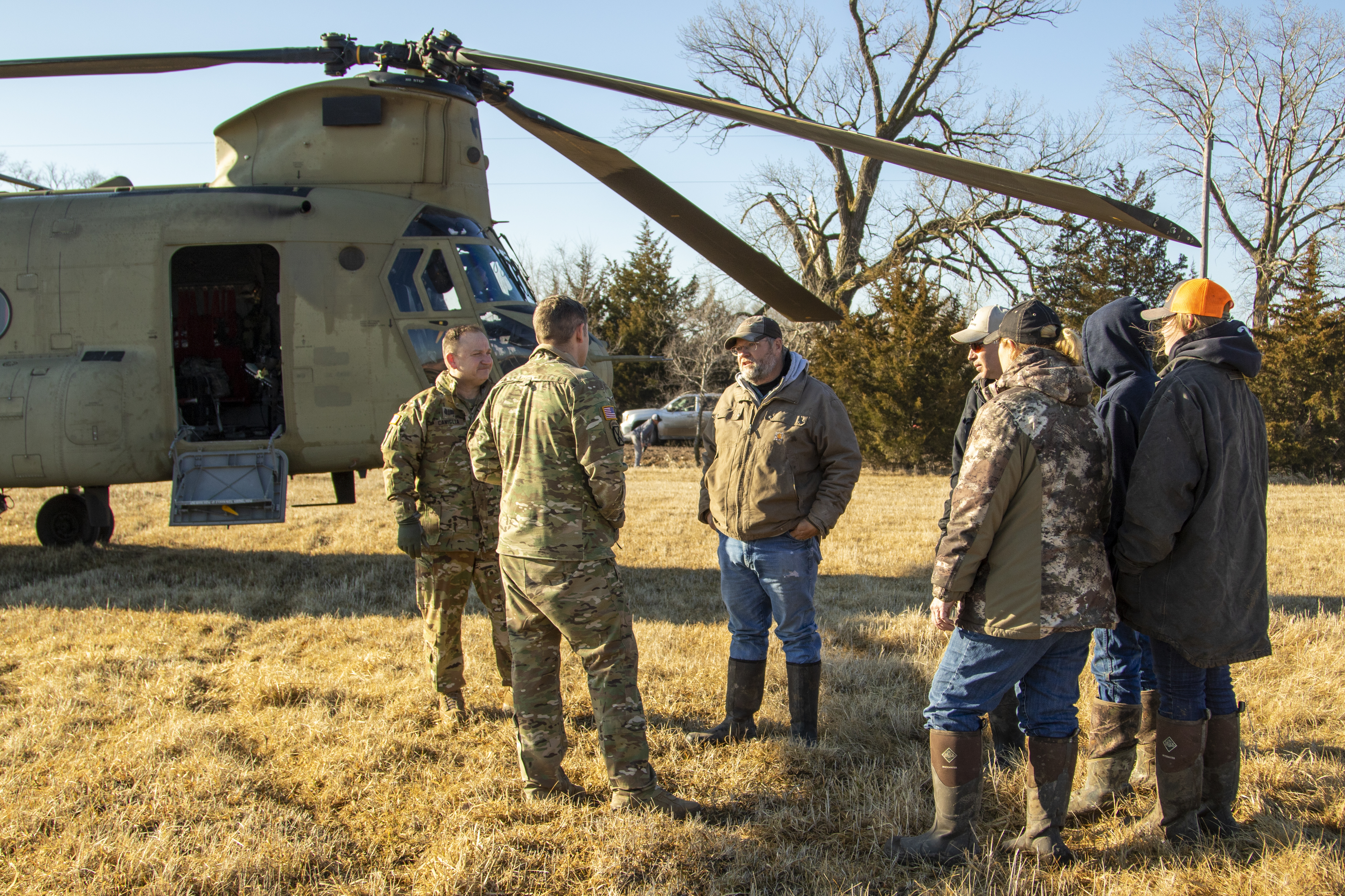The Nebraska National Guard would continue to conduct hay delivery operations using CH-47 Chinook helicopters through early April, with maintenance assistance by the Minnesota Army National Guard’s Company B, 2-211th General Support Aviation Battalion, who were brought in with an emergency management assistance compact. The Minnesota unit would also have the opportunity to crosstrain with the Nebraska National Guard and help conduct aerial hay drop operations March 23, 2019.