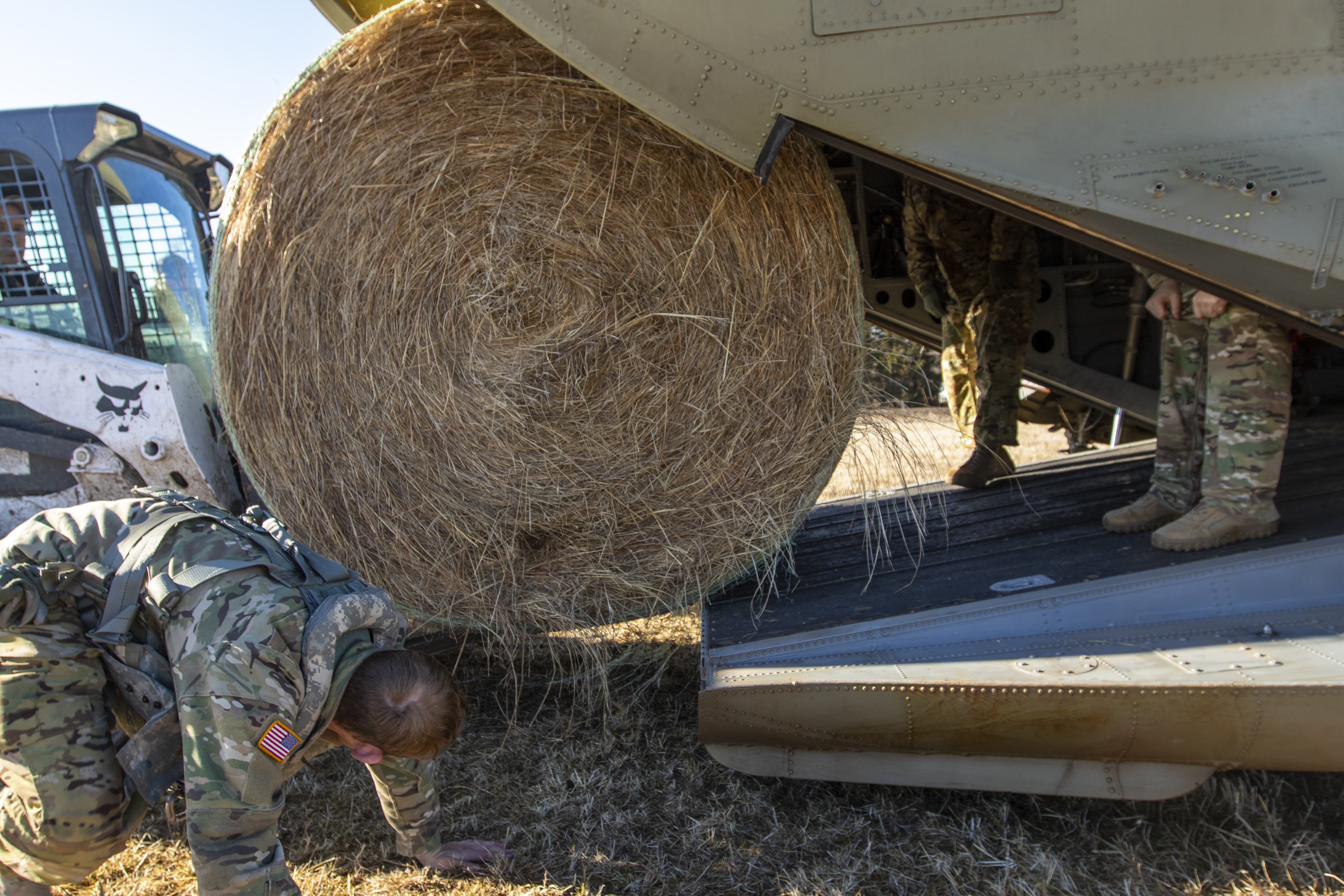 At the conclusion of the response effort, the National Guard helped deliver 94 round hay bales, or approximately 188,000 pounds of hay to more than 900 head of livestock.