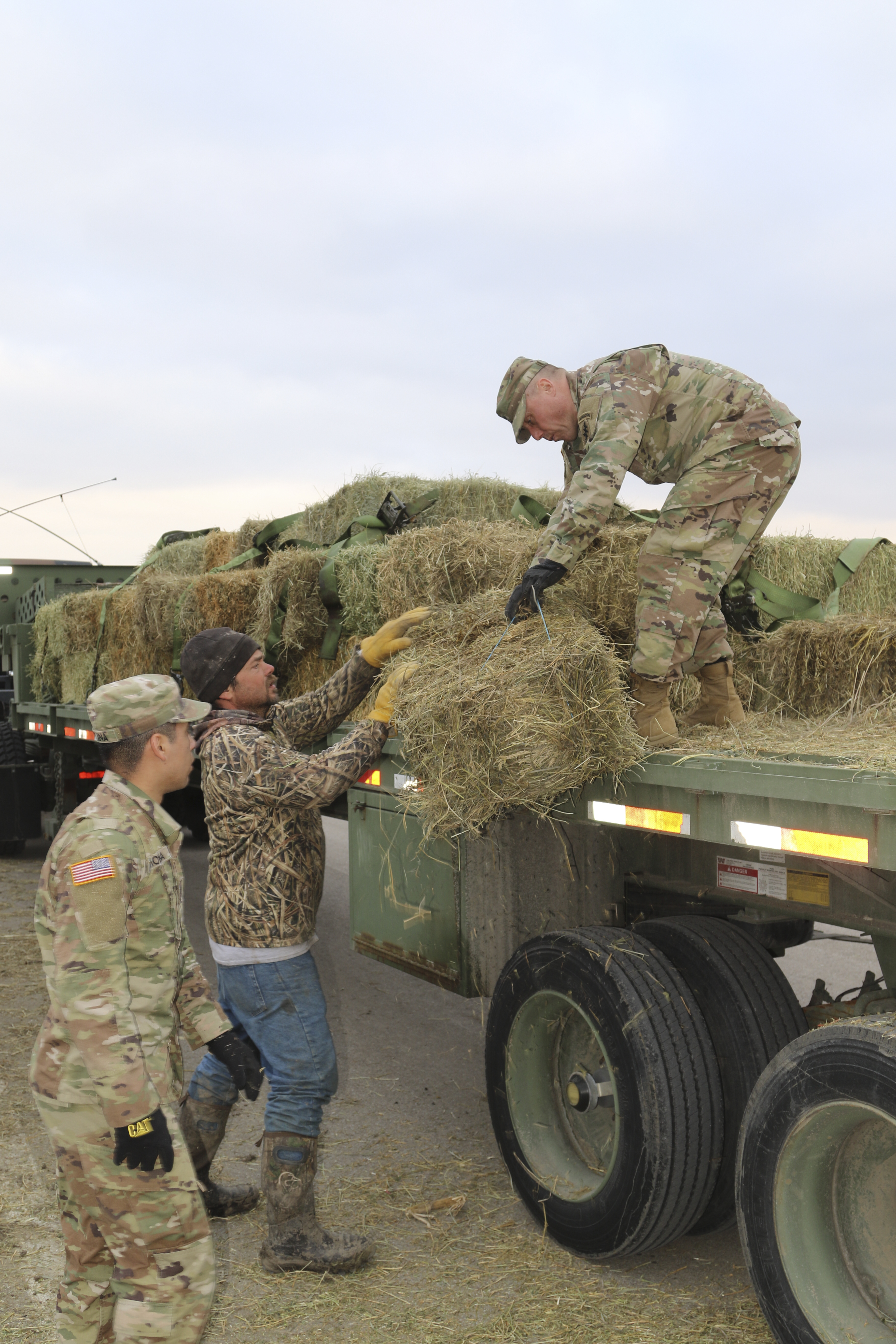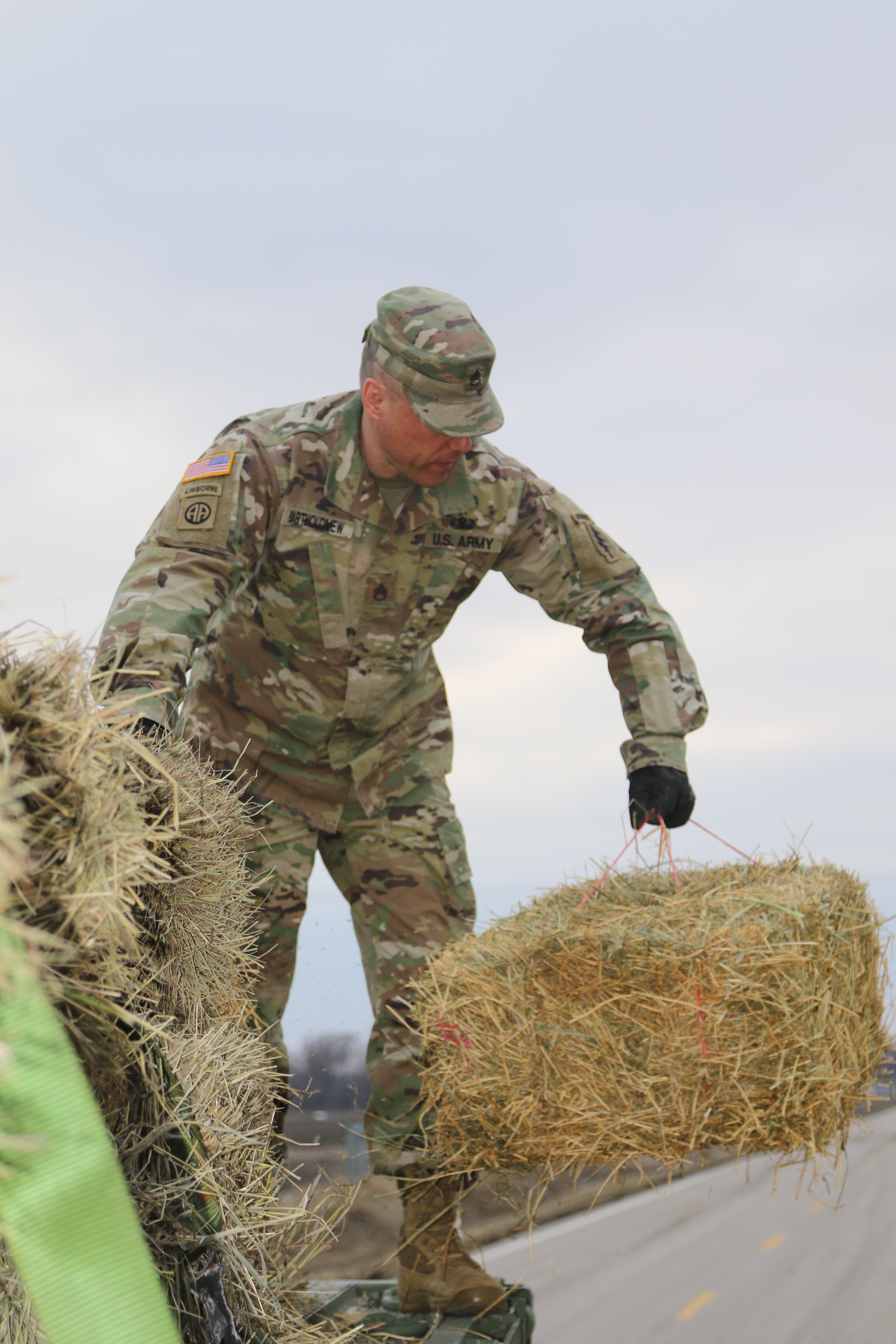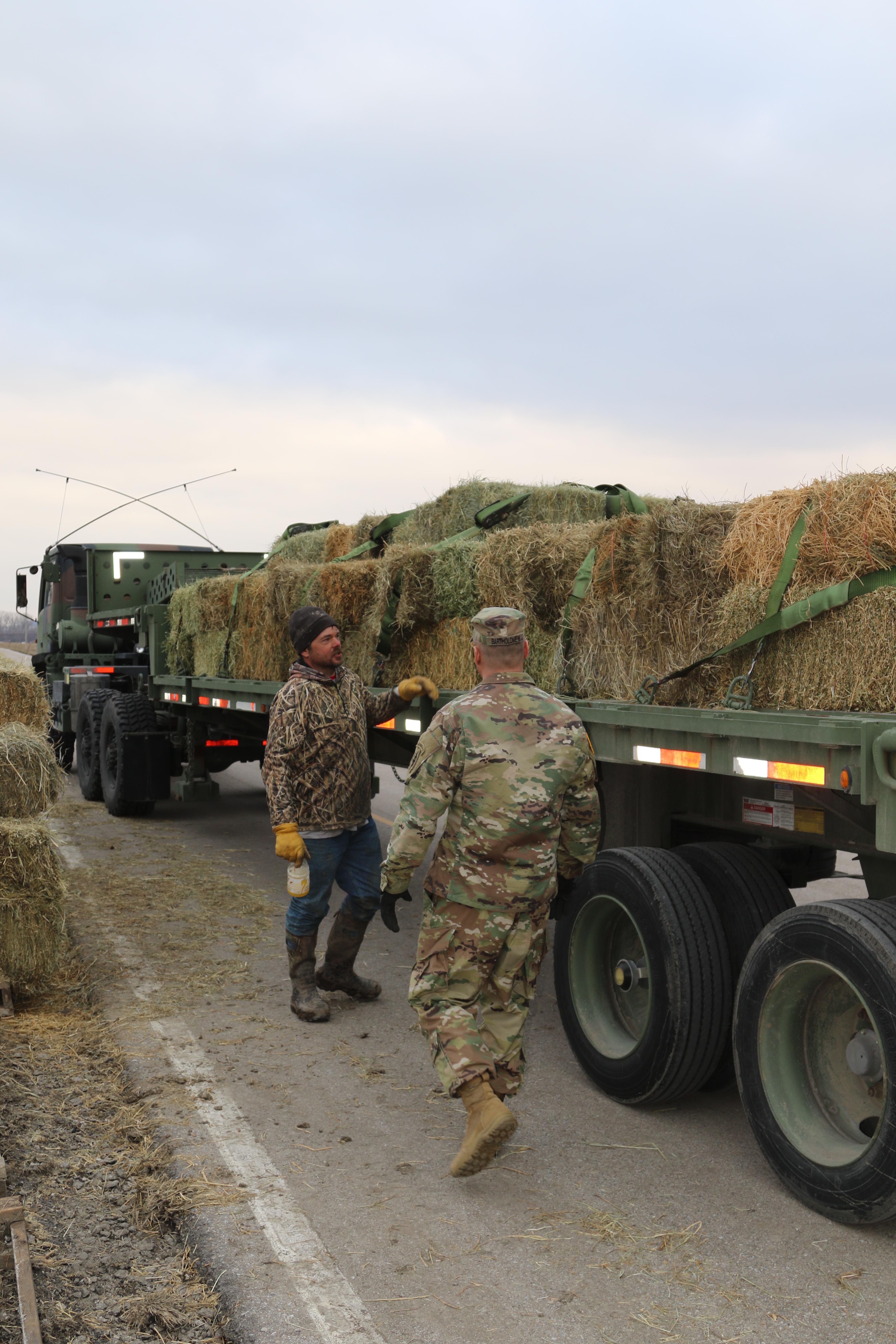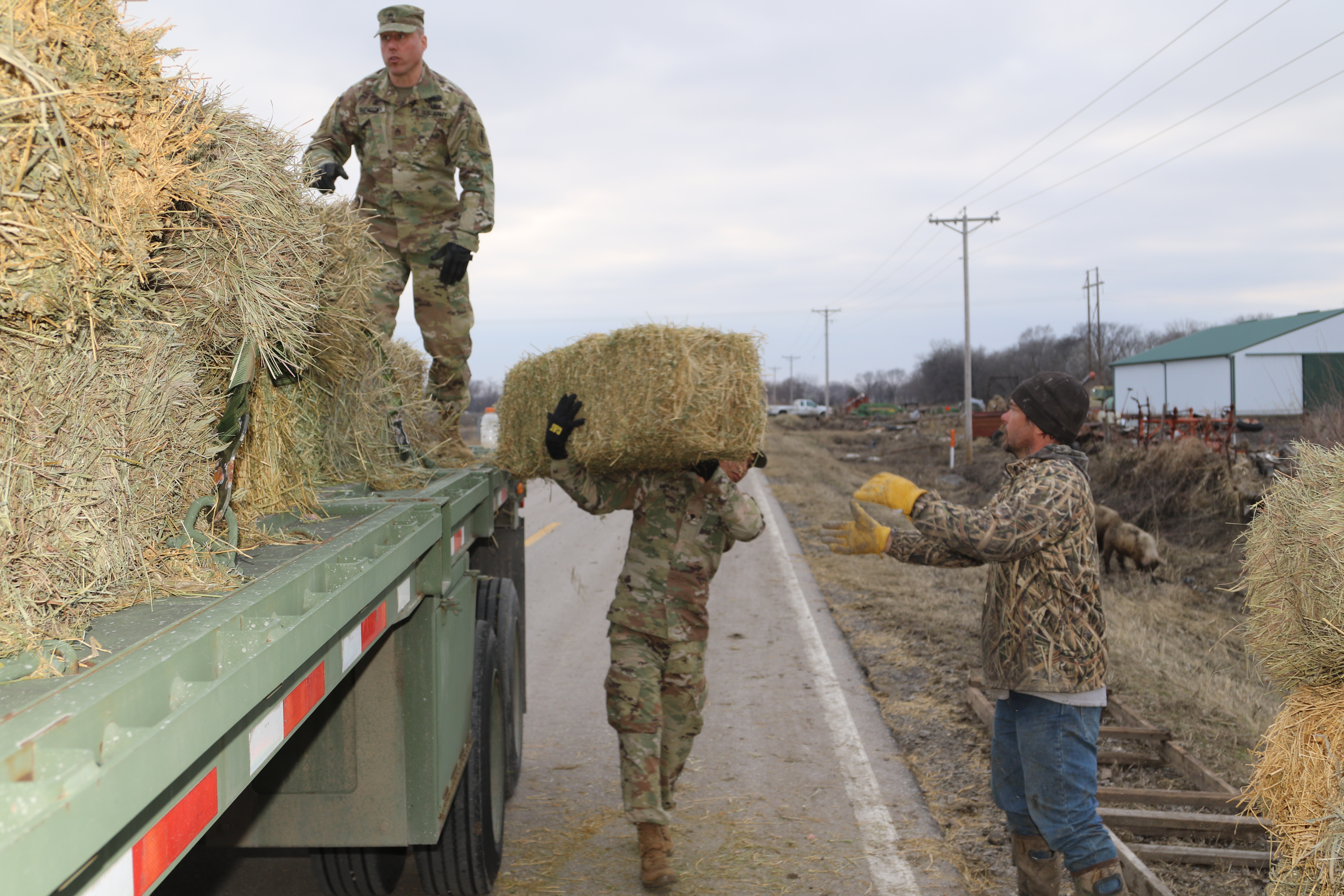 In total, the Nebraska National Guard would deliver 80 square hay bales by ground vehicles to help feed livestock in need.