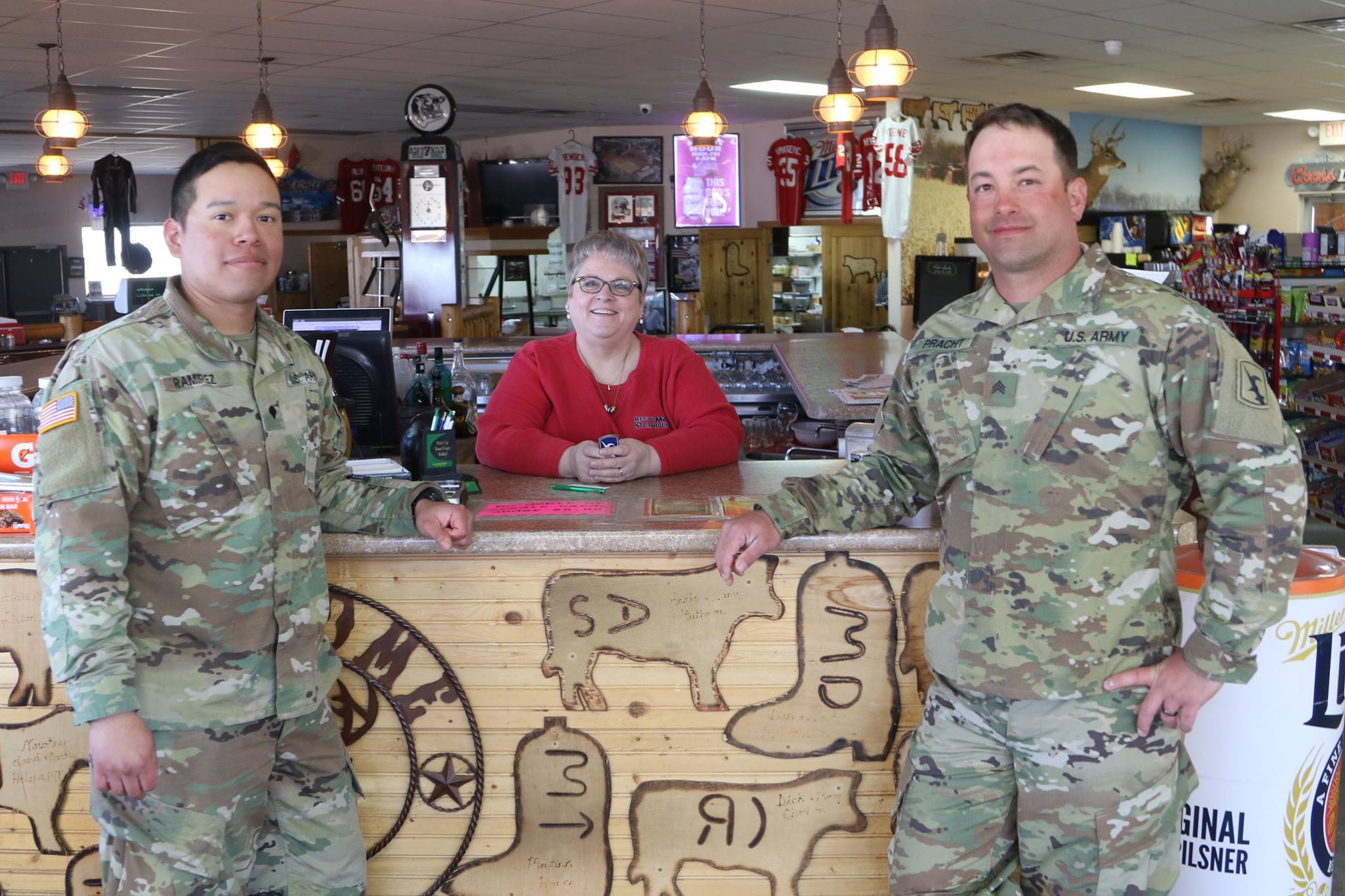 Some of the Soldiers supporting the traffic control mission near Columbus, Nebraska, were treated delicious food and drinks thanks to the generosity of Bonnie Nekl, co-owner of Reg’s 7 Mile Steakhouse.